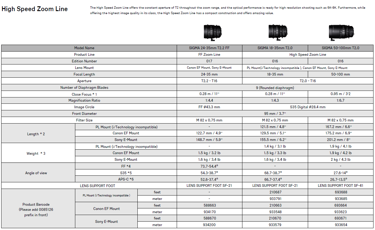SIGMA Cine Zoom Lens SET[EF]